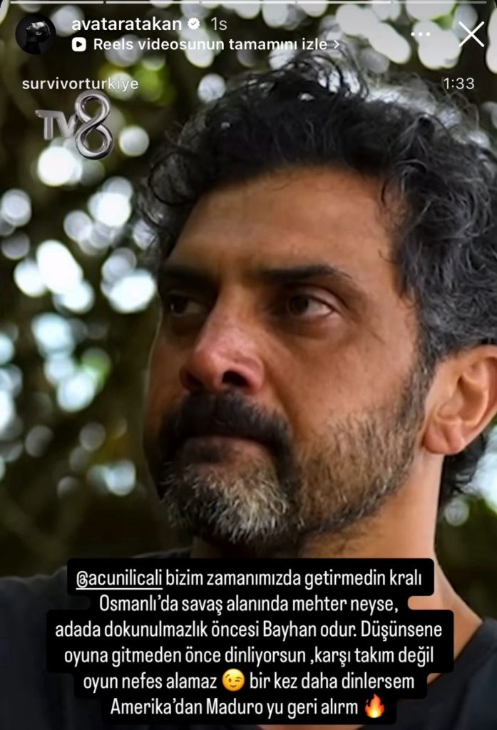 Survivor’da yarıştığı dönemde performansı ve açıklamaları ile dikkat çeken Avatar Atakan lakaplı Atakan Arslan sosyal medyadan yaptığı bir açıklama ile gündem oldu. Arslan, Survivor 2026’nın popüler isimlerinden biri olan Bayhan’a destek paylaşımında bulundu ve Acun Ilıcalı’ya seslendi.